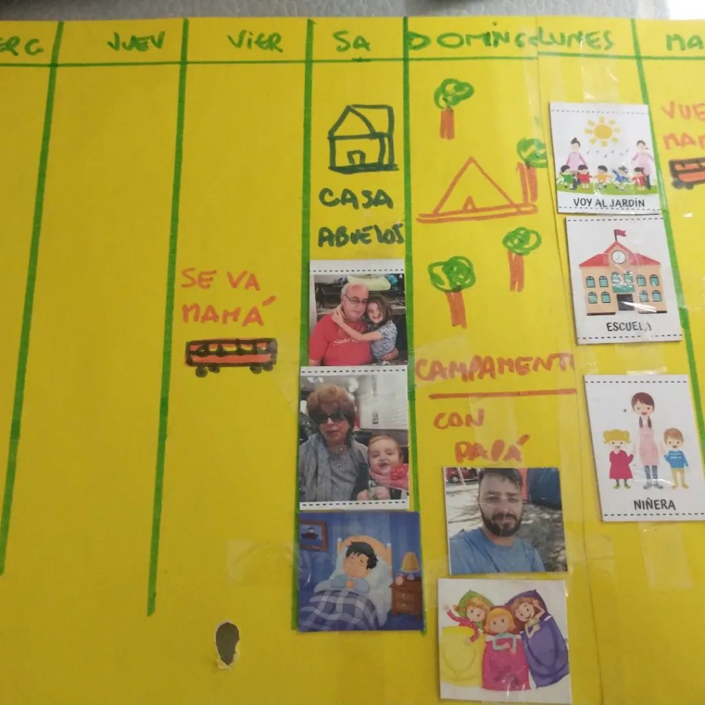 ✔️Armado de calendario. Ahí la idea es marcar el día del viaje y los días que no voy a estar. Podemos agregar qué planes tienen ellos con su papá o familia en casa, paseos, etc.